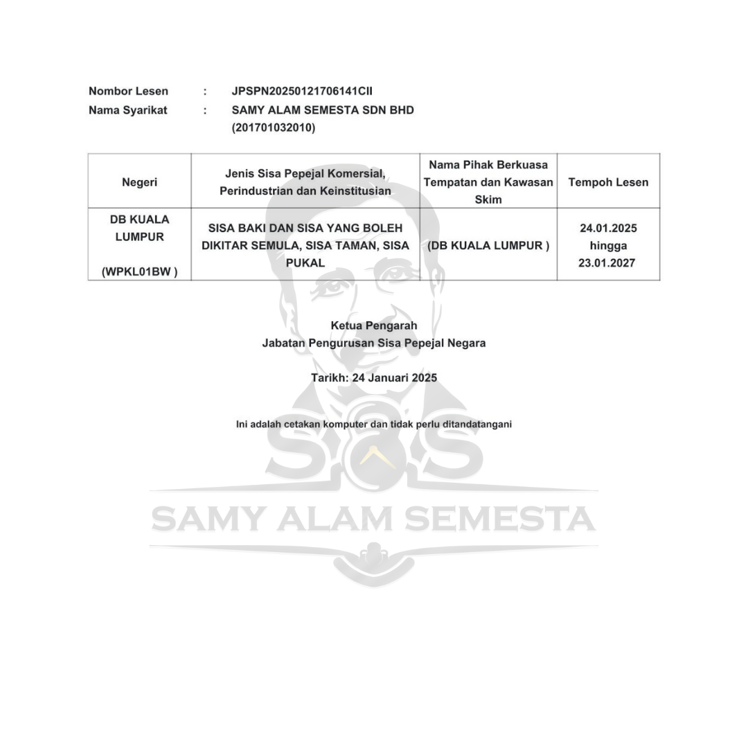With strong corporate foundations, sound governance, and all necessary environmental and operational licenses in place, We continue to provide reliable, professional, and environmentally responsible recycling solutions to clients across various sectors.